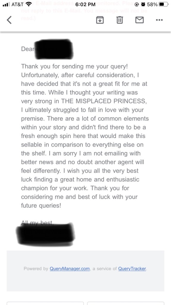 While The Misplaced Princess has my deepest affection (and strong writing, thank you for saying that Ms. Agent), she is going to sit on the shelf now.